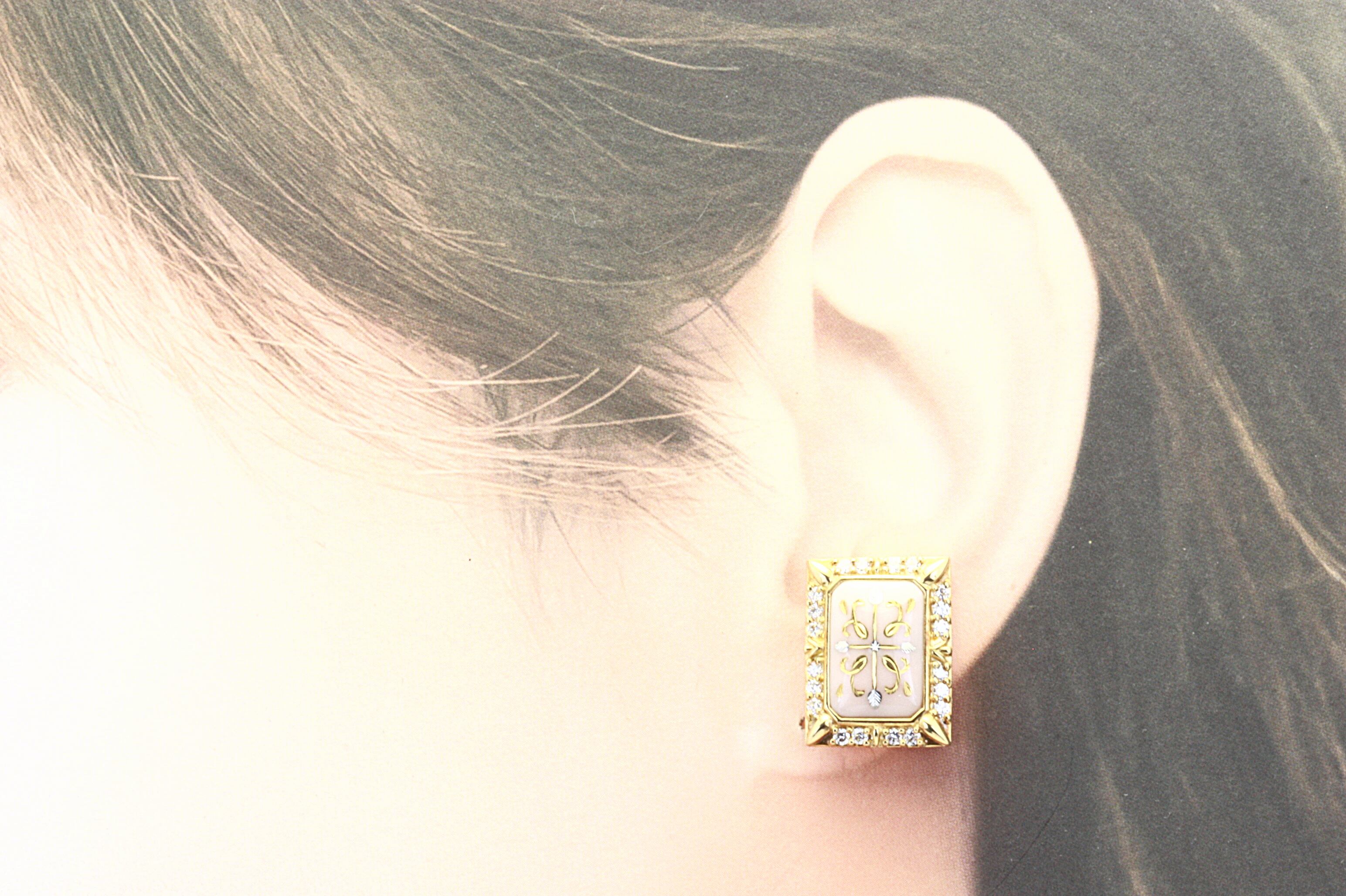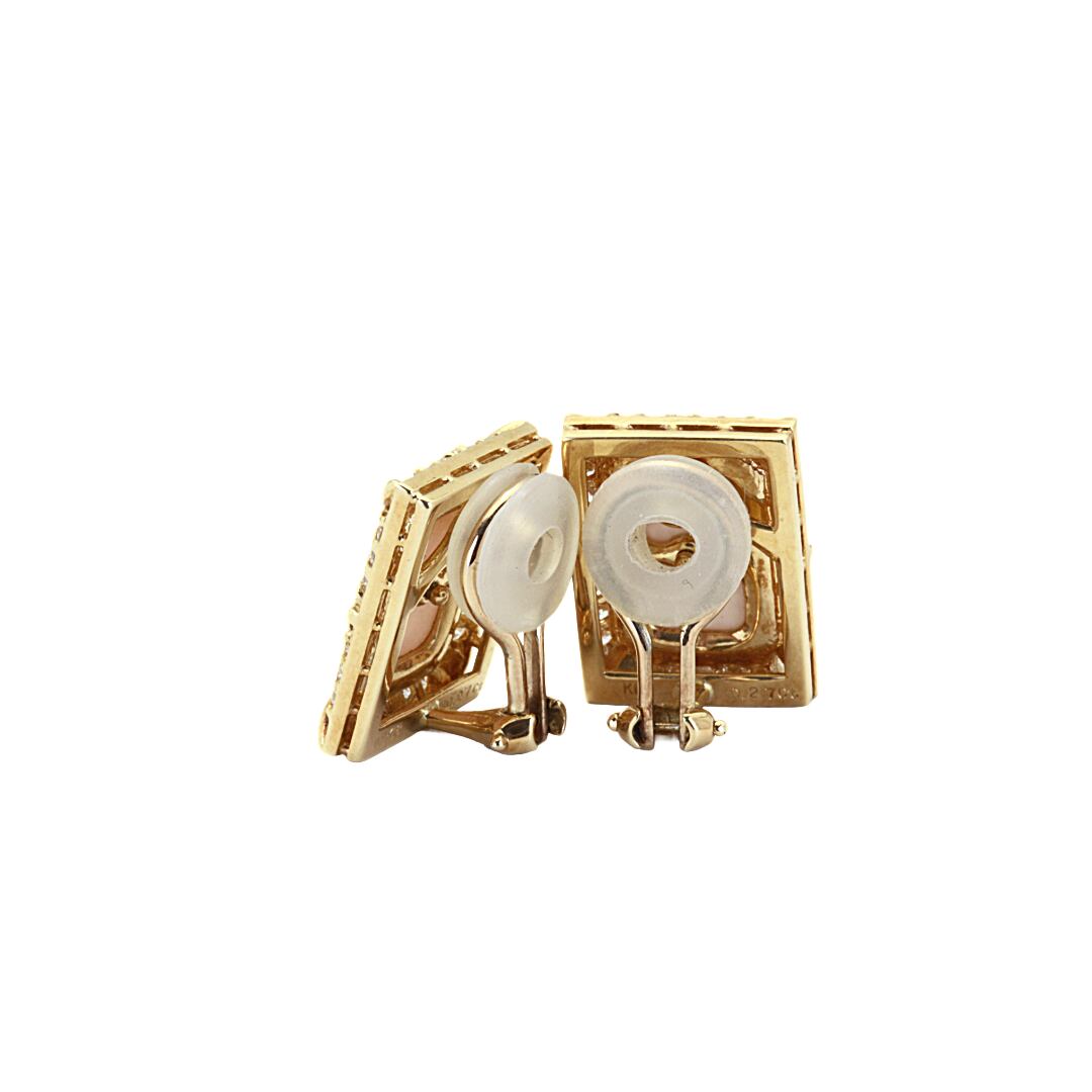 品の良いスクエアーの桃色サンゴに美しく象嵌された素晴らしい作品です。